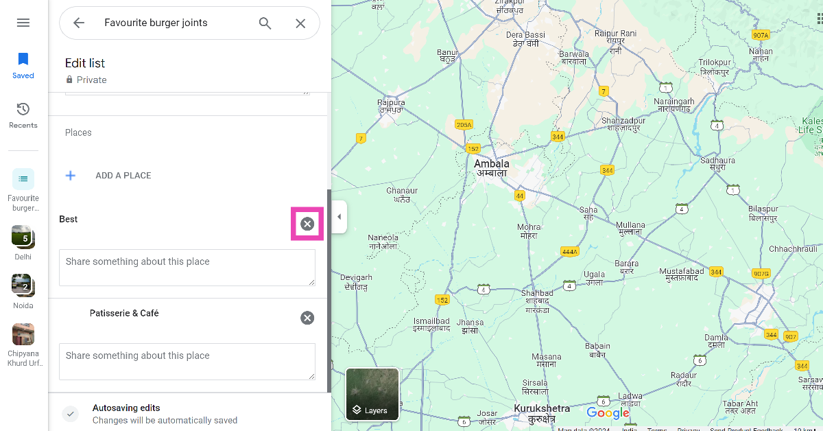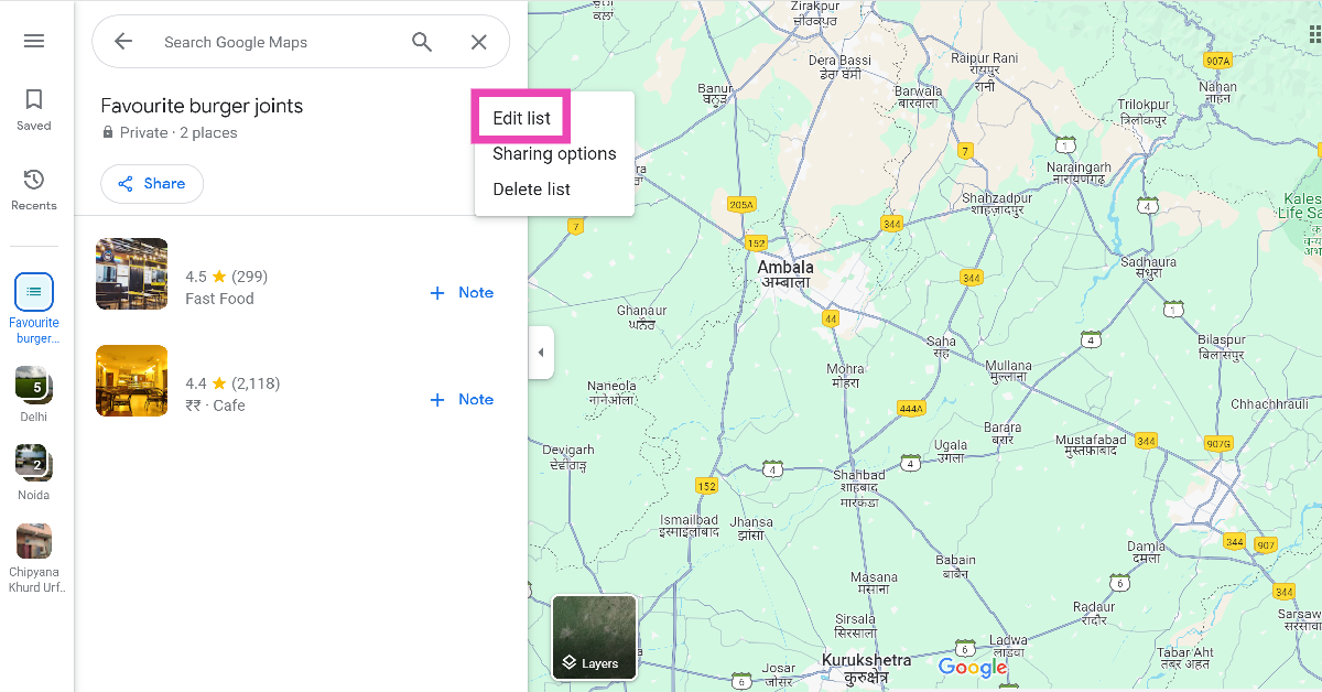 Googleマップがレポートを確認すると、場所が削除されます。同様に、リストの名前と場所も編集できます。