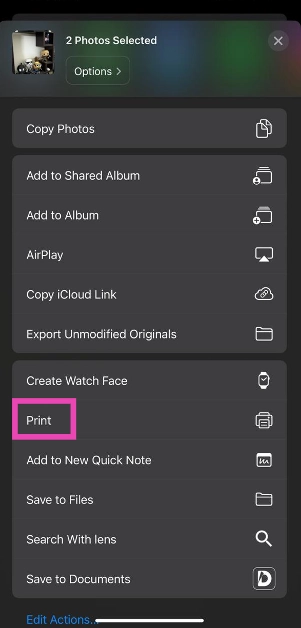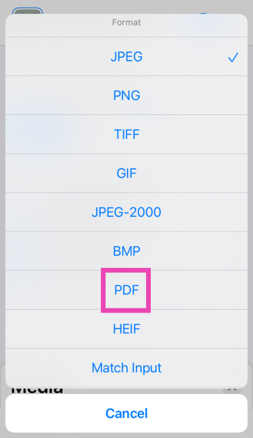 写真アプリで画像を選択し、印刷オプションに移動してから、「ファイルへの保存」を押します。 iPhoneのファイルアプリからPDFとして画像にアクセスできるようになりました。