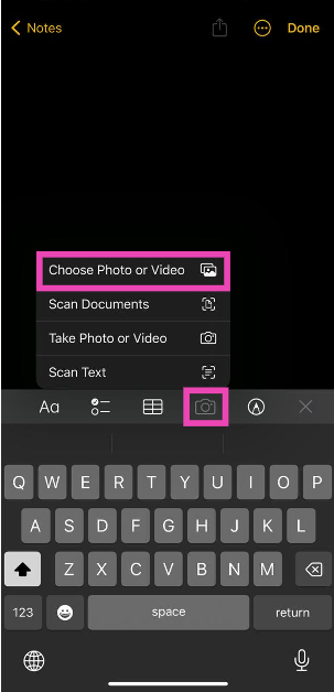 ステップ3:カメラアイコンを押して選択します写真またはビデオを選択してください。