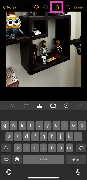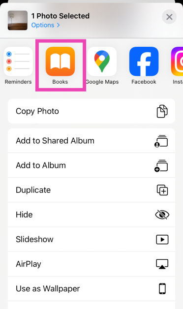 ステップ2:ヒットしますアイコンを共有します画面の左下隅に、画像をにエクスポートします書籍アプリ。