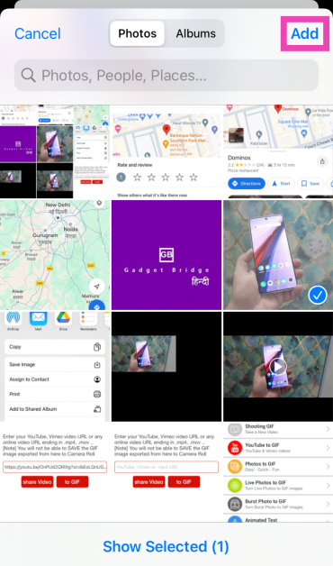 ステップ1:打ち上げ写真アプリあなたのiPhoneで写真を選択しますPDFファイルに変換する必要があります。