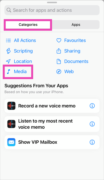 ステップ5:ヒットします検索バー画面の下部で選択しますカテゴリ。