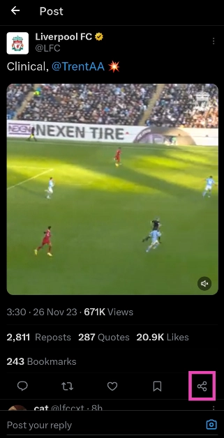 ステップ2:ビデオでTwitterの投稿に移動しますコピーそのリンク。