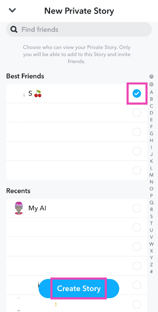 ステップ3:を選択します友達誰ですか許可された物語を見るために。