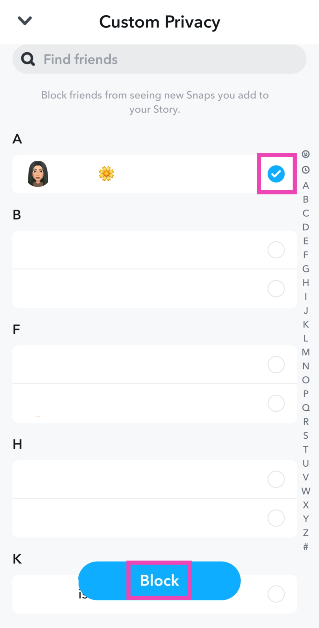 ステップ5:を選択します連絡先あなたがしたい人から隠れる物語。