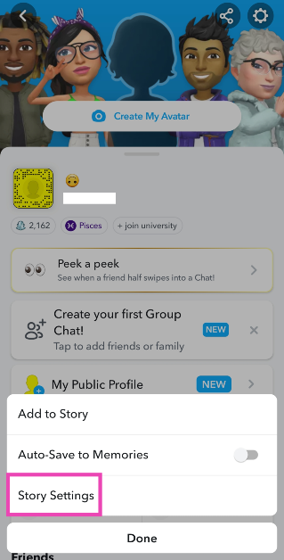 ストーリー設定を使用してSnapchatストーリーを非表示にします