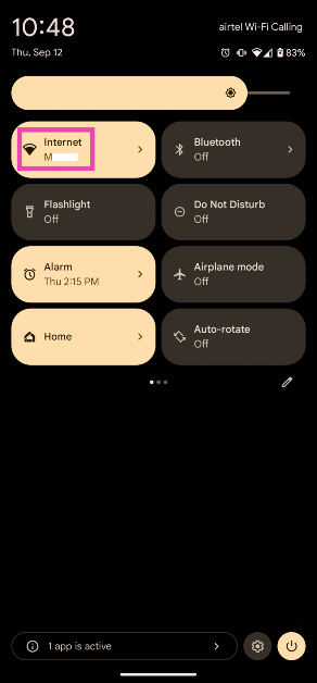 ステップ1:ステータスバーからスワイプして表示しますクイック設定メニュー。