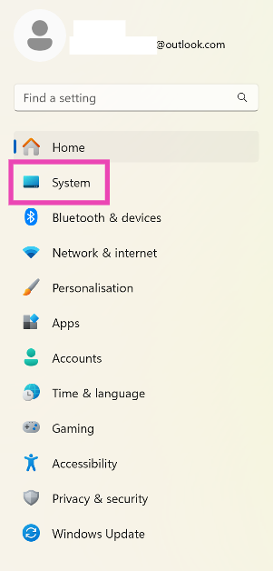 ステップ1:行きます設定に切り替えますシステムタブ。