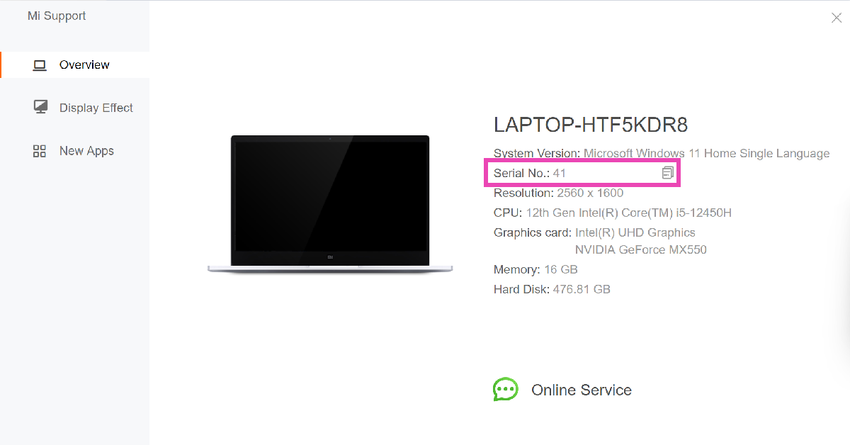 ほとんどのOEMには、PCとラップトップ用の独自のサポートまたはコンパニオンアプリがあります。このアプリを使用すると、ラップトップの重要なコンポーネントと機能を制御しながら、デバイスに関する重要な情報も指定できます。たとえば、LenovoにはVantageアプリがあり、XiaomiにはMIサポートアプリがあり、HPにはMYHPとサポートアシスタントがあります。独自のアプリを起動し、関連するセクションでデバイスのシリアル番号を検索します。
