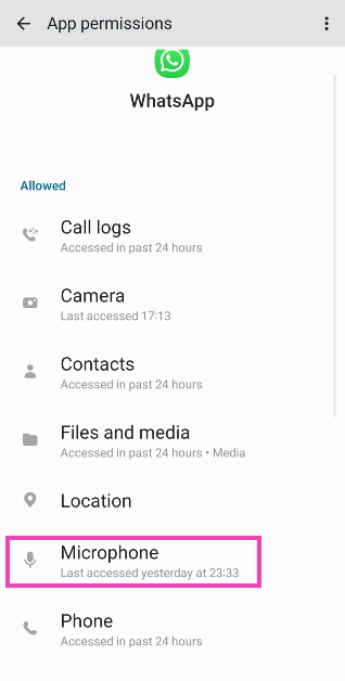 ステップ4:選択しますマイクロフォンタップしますアプリの使用中にのみ許可します。