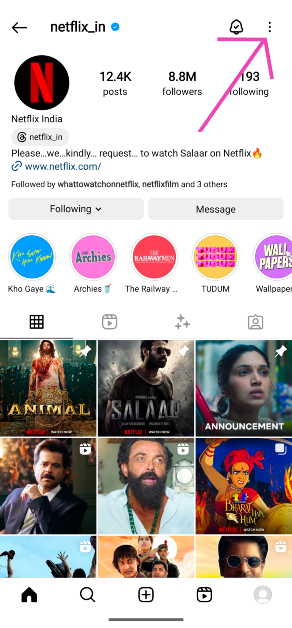 ステップ1:ユーザーに移動しますInstagramプロファイルタップします続く。