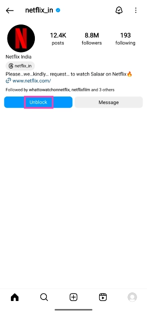 ステップ4:プロファイルがブロックされたら、ヒットしますブロックを解除します同じページのボタン。 Instagramのメニューの[設定とプライバシー]ページからユーザーのブロックを解除することもできます。