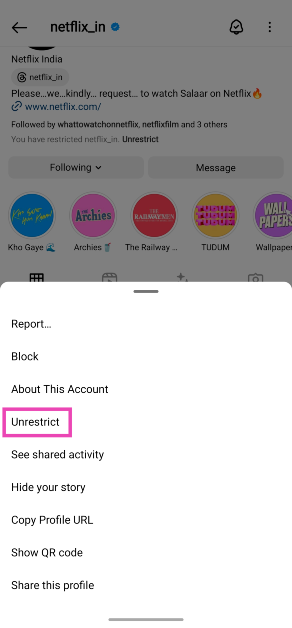 ステップ5:メッセージを開いてヒットします無制限。また、ユーザーのプロファイルオプションから制限を解除することもできます。