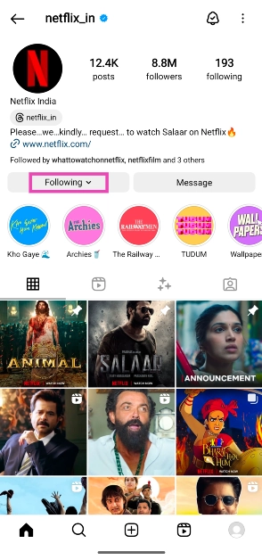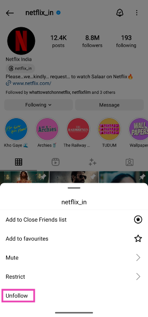 「無効なアカウントをInstagramで連絡することはできない」エラーを修正するためにできるもう1つのことは、ユーザーのアカウントを解除してフォローすることです。