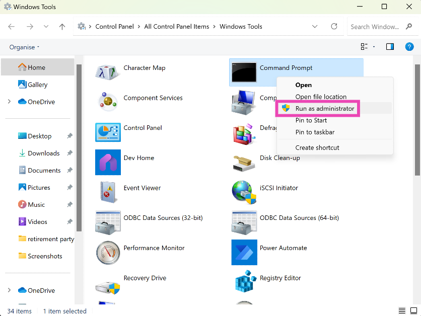 ステップ2: 右クリックしますの上コマンドプロンプト選択します管理者として実行します。