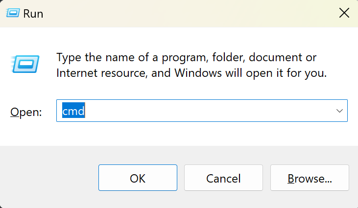 ステップ2:タイプ 'CMD'そしてプレスCtrl+Shift+Enter。
