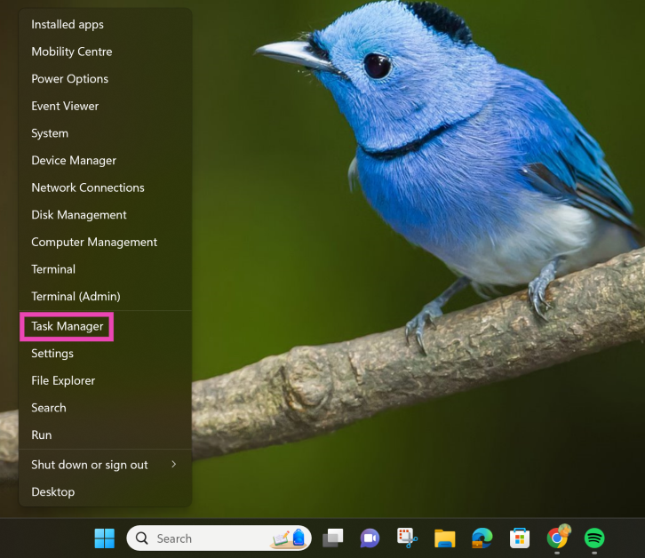 ステップ1:開きますクイックアクセスメニュー右クリックしてWindowsアイコンタスクバーまたは押しますWindowsキー + x。