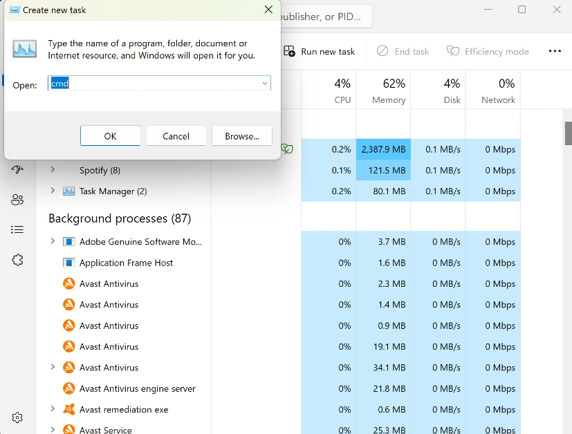 Windows11でタスクマネージャーを使用して管理者としてコマンドプロンプトを実行する