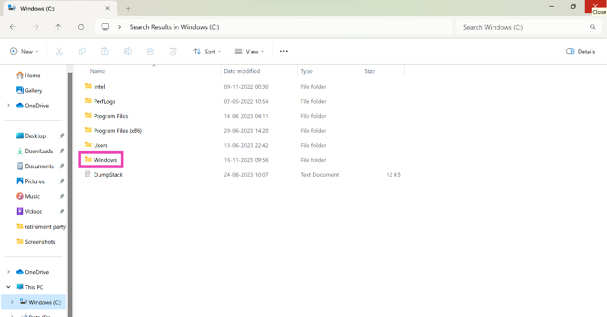 ステップ2:開きますC:ドライブに行きますWindowsフォルダ。
