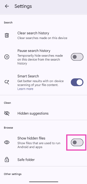 ステップ1: 打ち上げお使いの携帯電話のファイルマネージャーアプリ。それに行きます設定。