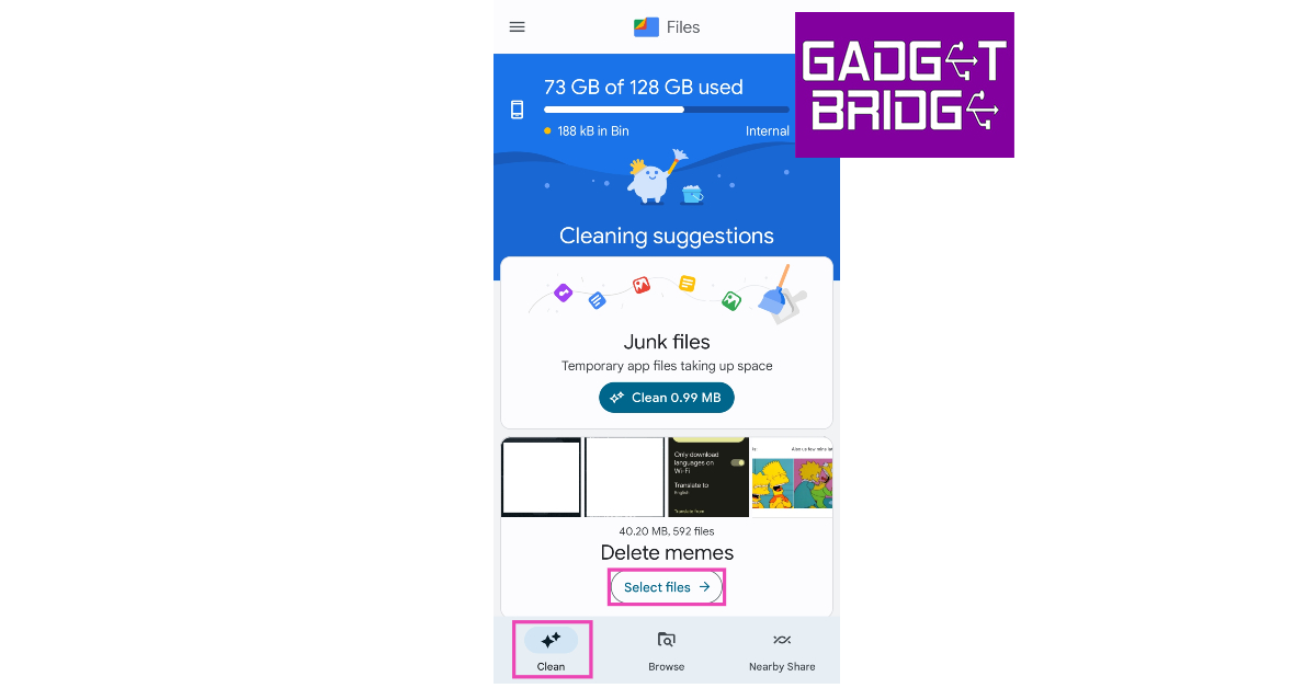 AndroidのネイティブGoogleファイルアプリには、デバイス上の冗長で古いデータを削除するのに役立つクリーンアップツールがあります。ファイルアプリを使用してストレージスペースを解放する方法は次のとおりです。