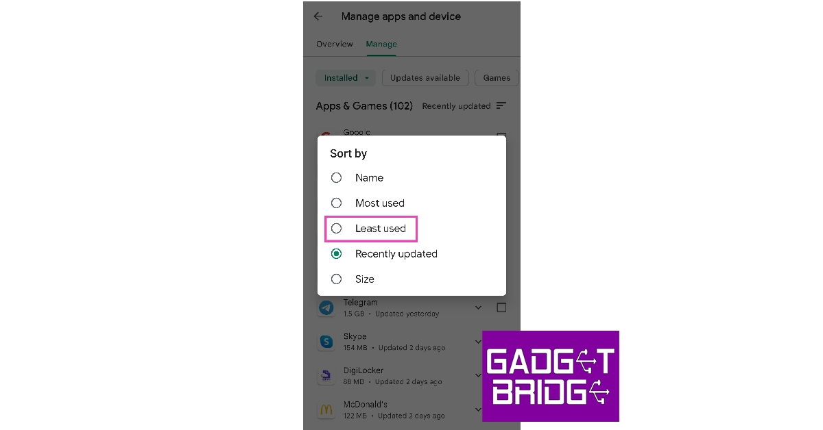 ステップ4:ファイラーオプションをタップして、[使用されていない]を選択します。