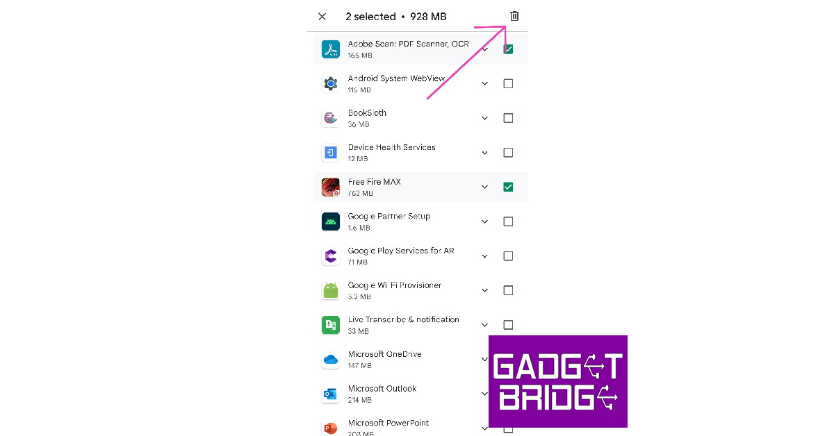 ステップ5:削除するアプリをマークし、画面の右上隅にある削除アイコンをタップします。