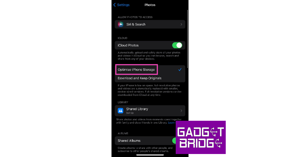 ステップ2:iCloudの下で、iPhoneストレージを最適化するオプションを選択します。