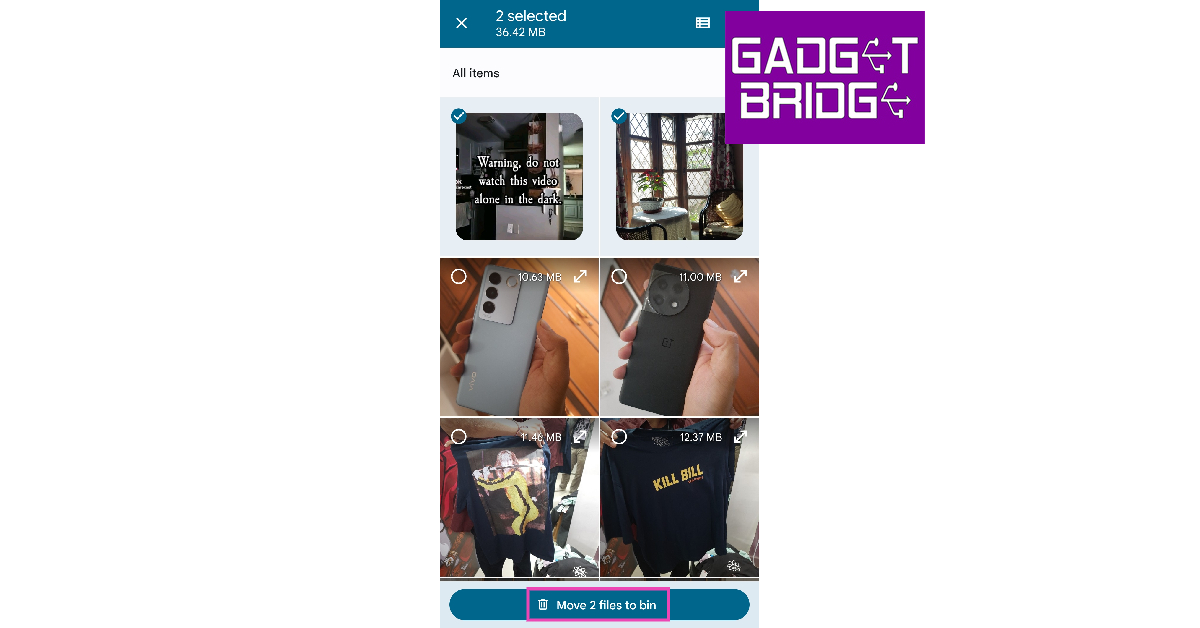 ステップ4:[Binに移動]をタップしてファイルをクリアし、スペースを解放します。