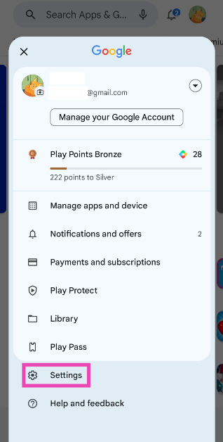 Google Playストアを更新するには、画面の右上隅にあるプロフィール写真をタップし、設定に移動し、下にスクロールして、更新プレイストアを選択します。