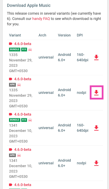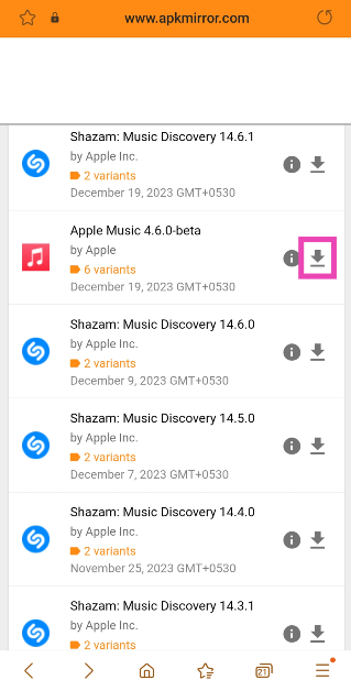 ステップ4:ダウンロードリストからのアプリの最新バージョン。