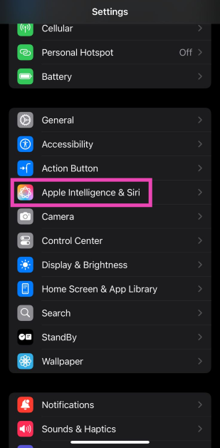 ステップ1:行きます設定選択しますApple Intelligence&Siri。