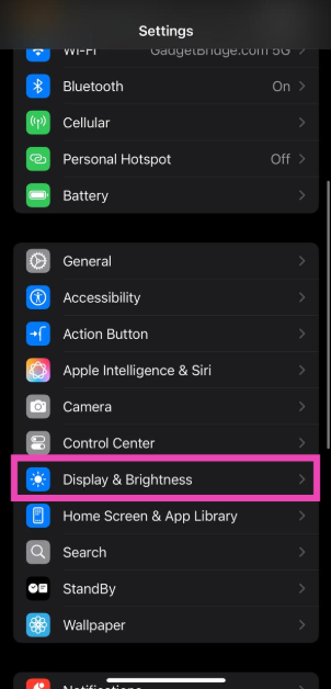 ステップ1:行きます設定選択します表示と明るさ。