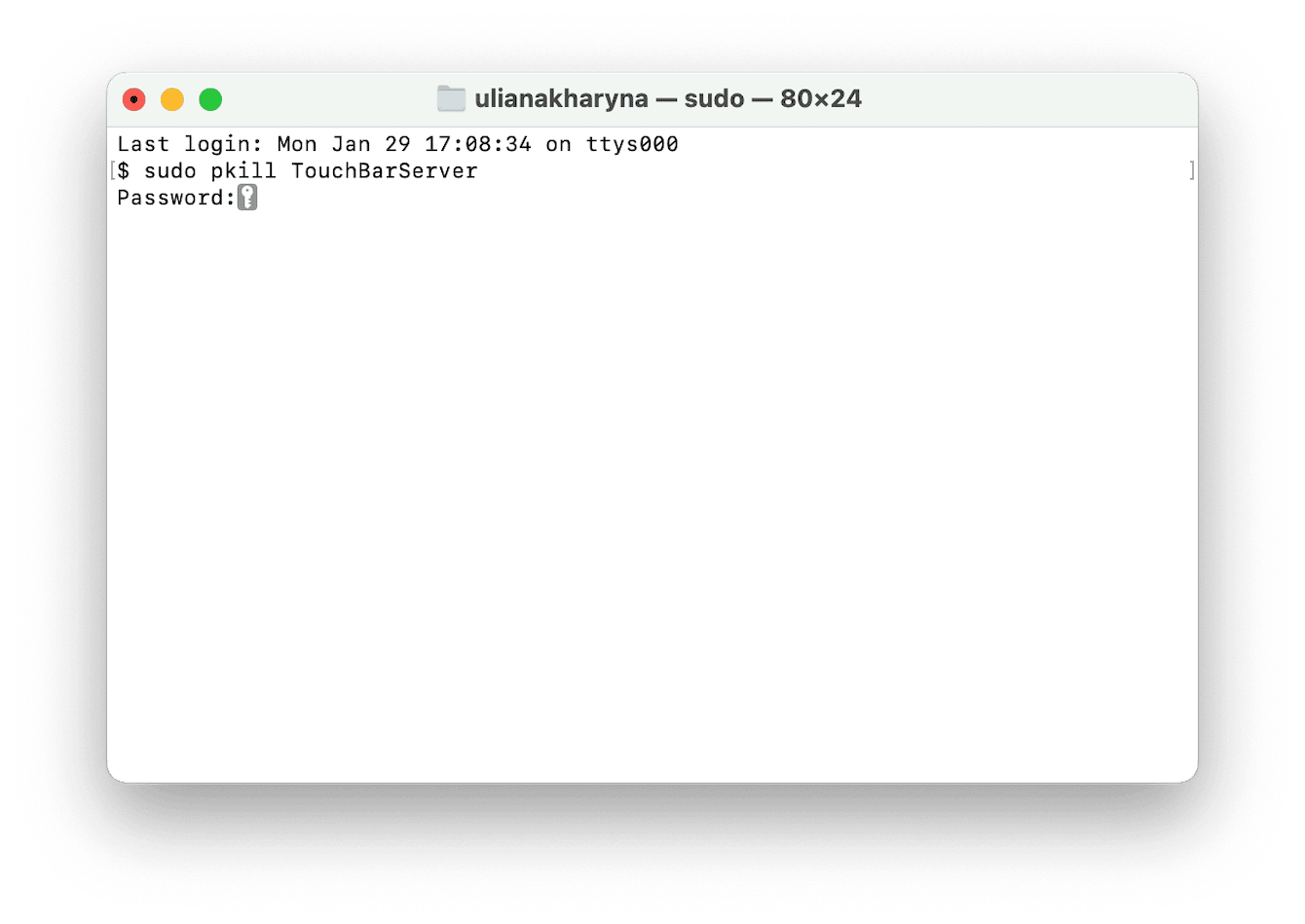 これまでのところうまくいかない場合、次のステップは端末を使用して、タッチバーを制御するプロセスをリセットするコマンドを実行することです。