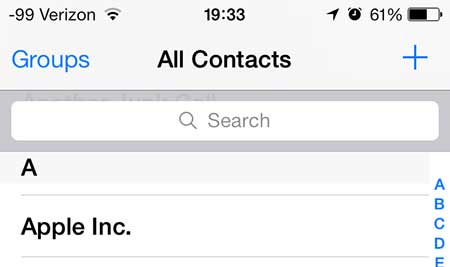 その後、含めたフレーズを使用して連絡先を検索すると、結果リストの上部に表示されます。