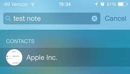 したがって、たとえば、「ニューヨークの販売」というフレーズをノートに追加して、あまり頻繁に話すことのない連絡先のメモに追加することで、スポットライト検索でそのフレーズを検索することで、その人を見つけるのが簡単な作業になることができます。