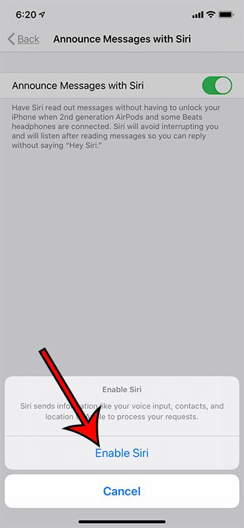 ステップ5:タップしますsiriを有効にします以前にSIRIを有効にしていなかった場合はボタン。