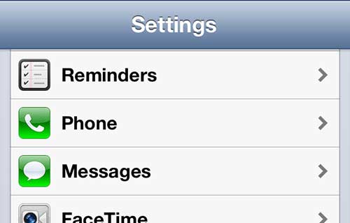 iPhone 5設定メニューを開きますステップ2:にスクロールしますメッセージオプションを使用して、1回タップして選択します。