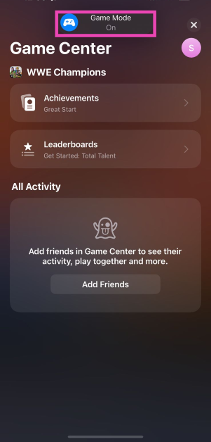 ステップ3:'ゲームモードオン'画面の上部に通知が表示されます。