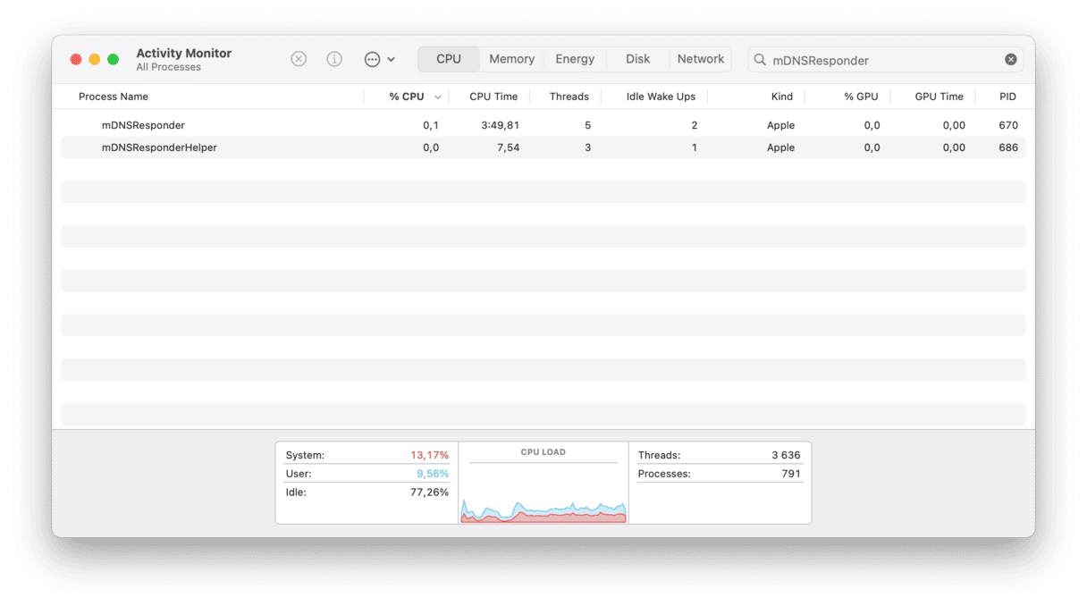 Appleが「DiscoveryD」プロセスと呼ばれるサービスにそれを置き換えた時代があり、事態はひどく間違っていました。おそらく、Mdnsresponderが10年以上にわたって微調整されており、ネットワーキングは常にMacosの最も厄介な部分の1つであることを考えると驚くことではありません。最終的に、AppleはMDNSResponderを返し、アクティビティモニターを介して見つけることができます。