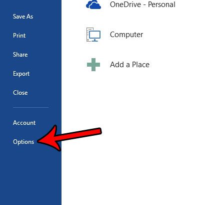 ステップ3:クリックしますオプションウィンドウの左側にある列の下部にあるボタン。