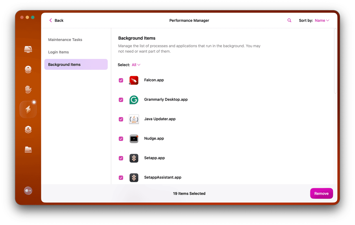 また、パフォーマンスマネージャーを使用すると、ログインとバックグラウンドアイテムを簡単に確認でき、必要に応じて多くのリソースを使用して削除できます。無料のCleanMymacトライアルを入手してください。