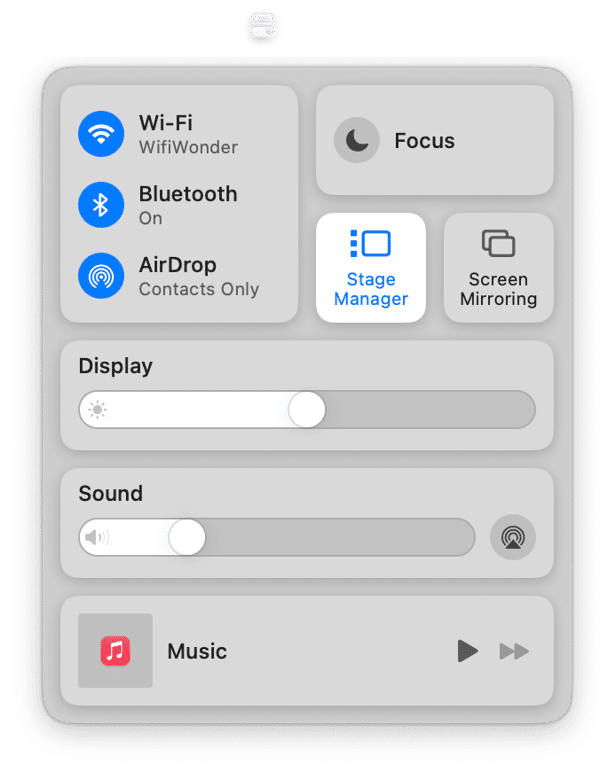 または、コントロールセンターからステージマネージャーをオンまたはオフにすることもできます。