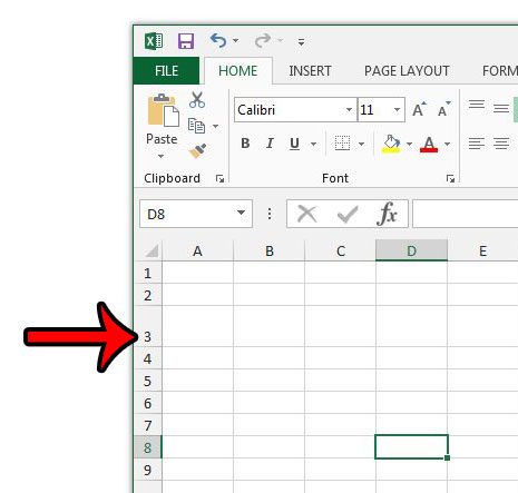 下の画像の矢印は、行3の問題の場所を指しています。行番号が表示されない場合は、行の見出しが隠されています。チェックすることでそれらを押し下げることができます見出しのオプションビュータブ。