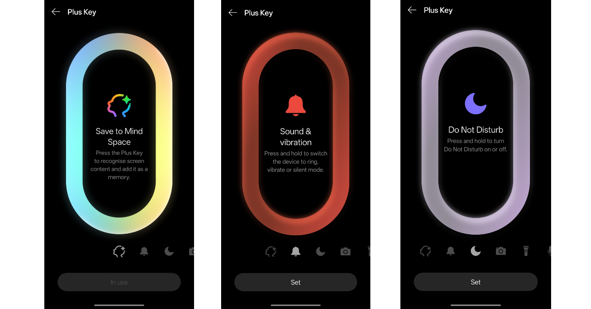 デフォルトでは、Plusキーは、画面上のコンテンツを読み取り、メモリスペースのメモリとして保存するようにプログラムされています。サウンドプロファイルを切り替え、カメラを開き、DNDを有効にするなどをカスタマイズできます。