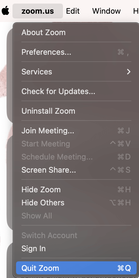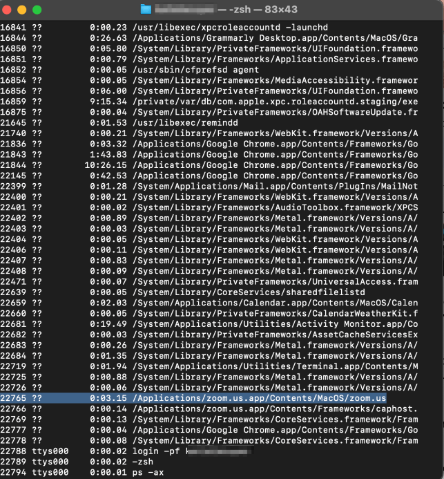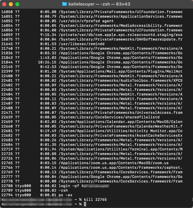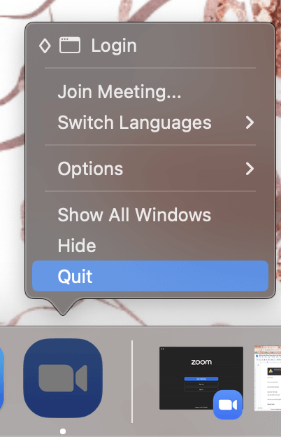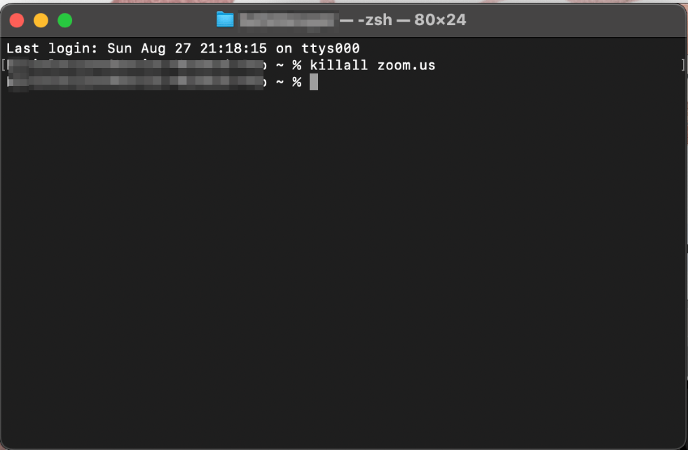 kill [22765]繰り返しますが、このコマンドを使用しても端末は何もしていないようです。ただし、ズームアプリケーションは終了しました。確認するためにアプリケーションまたはドックを見てください。