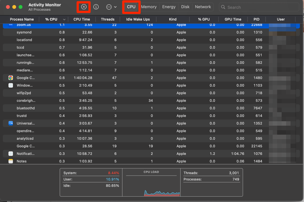 したがって、より人気のある力の禁煙方法が機能しない場合、試してみることができる他のオプションがあります。これらの最初はアクティビティモニターです。アクティビティモニターは、「正しい」アプリケーションを閉じようとしているかどうかを確認するのにも役立ちます。より多くのCPUを使用している別のアプリがある場合、そのアプリも閉じたいと思うかもしれません。