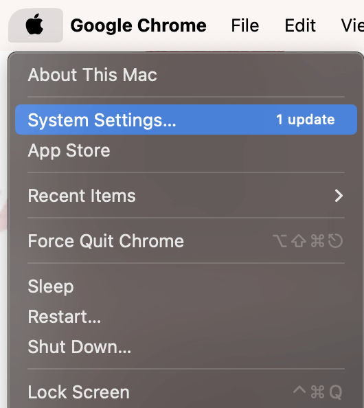 これがデフォルトのAppleアプリケーションの場合は、MacOSの更新を確認してください。 Appleメニューを使用して開きますシステム設定。