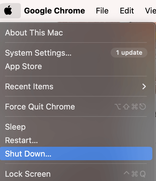 Appleメニューを使用して選択してMacをオフにしますシャットダウンまたは電源ボタン