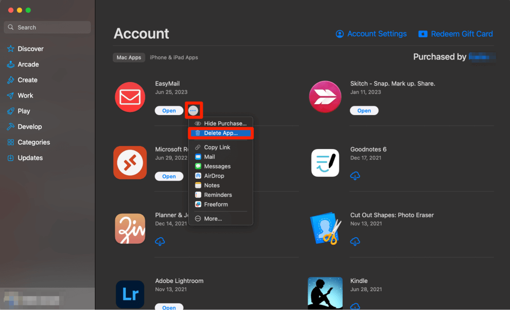 次に、削除してクリックしたいアプリの横にある3つのドットをクリックしますアプリを削除します。